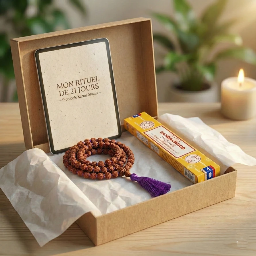 Ne laissez pas le chaos du passé troubler votre paix intérieure. Le Coffret spiriuel Karma Shanti réunit les 3 outils essentiels pour apaiser votre dette karmique : le Mala de Méditation Shanti (108 perles), l’Encens Sacré de Santal et le Guide de Rituel (PDF). Un protocole de 21 jours pour retrouver la sérénité